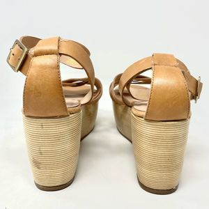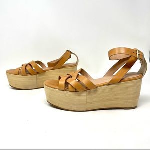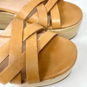 POUR La Victoire Noletta Tan Saddle Leather Flatform Sandals Size 8
