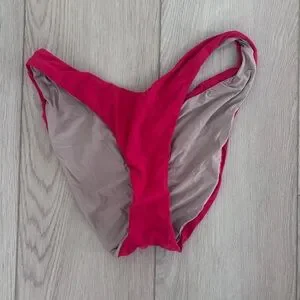 Vibrant red bikini bottom with a stylish design. Revolve brand. Note tag was cut out for comfort. Excellent condition otherwise.