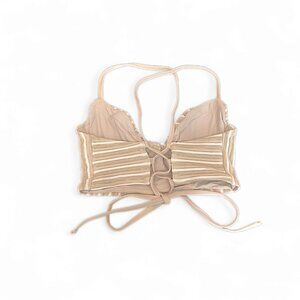 PQ NEW EARTH Corset Bralette Bikini Top Underwire Lace Up Striped Beige Small