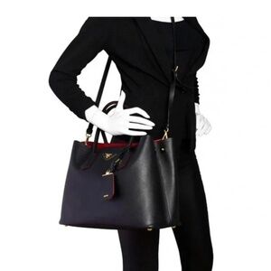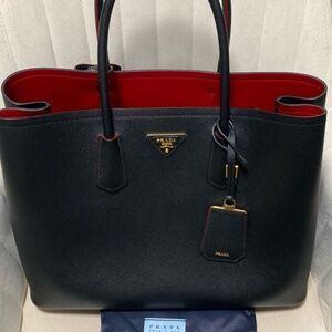 PRADA 100% AUTHENTIC BLACK SAFFIANO LEATHER WITH RED SMOOTH LEATHER INTERIOR