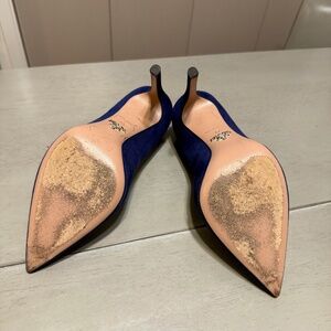 These lovelies are sooo special - and really, if you've got pretty feet, why not show-off their cleavage? The suede is clean & without scuffs, though very minor wear. The sole - leather of course, shows some wear, but no water marks or anything worn-down. A great comfy pair - though i always suggest with the Euro manufacturers that they tend to build true-to-size, and precisely! So it's wise not to squeeze into these and instead buy exactly your correct Euro size. Enjoy you sexy gal!