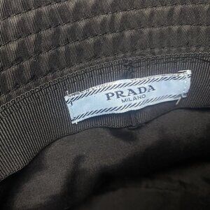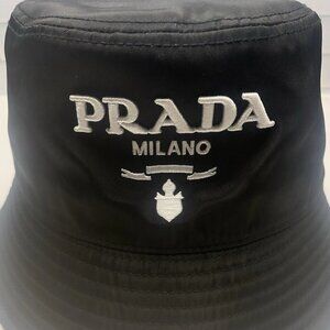 PRADA Black Drill Bucket Hat Milano Logo Embroidered