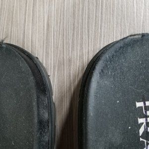 These boots are returns from Nordstrom. They are in excellent conditon. There is slight wear on the footbed near the heel area. The P is missing on the right slide.