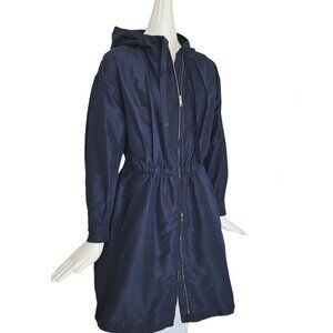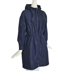 PRADA NAVY SILK HOODED COAT (40)