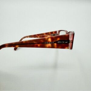 Prada unisex prescription glasses in a unique brown-red tortoise color. These glasses appear brown from certain angles but reveal a reddish-brown hue in daylight. Due to the limitations in Poshmark's color selection, both brown and red will be selected in the drop-down menu. These glasses are pre-owned and show typical signs of wear you'd expect on vision glasses. Please note, the lenses will need to be replaced with your prescription.
