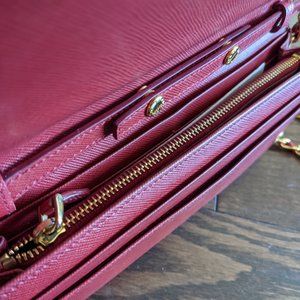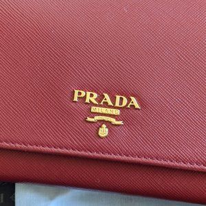 PRADA Red Saffiano Leather Wallet On Chain Crossbody Bag 100% AUTH