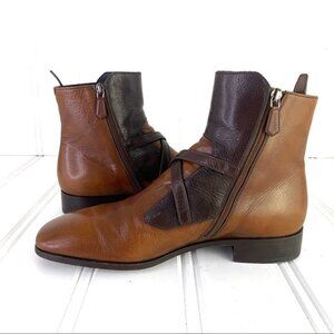 PRADA SAFFIANO BROWN SHOE 2 TONE POLISH LEATHER ANKLE BOOTS BLOCK STRAPPY MEN 6