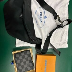 PRADA SIDE BAG. LOUIS VUITTON WALLET