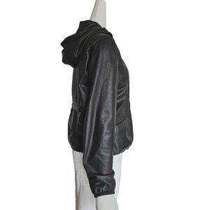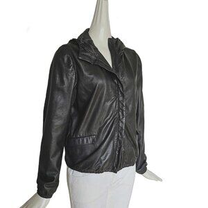 PRADA SPORT BLACK LEATHER HOODED JACKET (42)