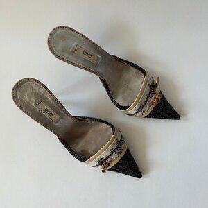 PRADA VINTAGE KIMONO EMBELLISHED MULES