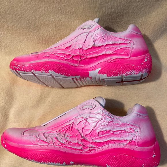 Step up your sneaker game with the limited edition PRADA X CASS ATT4CK CASSIUS HIRST SNEAKER in a stunning pink colorway. Worn by both men and women, these athletic shoes are a true statement piece.