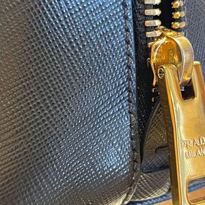 PRADA Black Saffiano Vernice Patent Leather Small Promenade Bag Used, in a very good condition. Show some minor wear , some wear on the leather and on the corners and handles,some scratches on hardware. Exterior: Corner wear, creases, structure wear , smoothing of leather , edge wear Hardware: Scratch(es) , plating wear All measurements are approximate