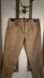 Khaki coloured riding pants with gold buttons and zippers at the bottom hem.