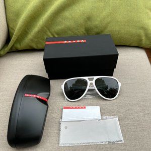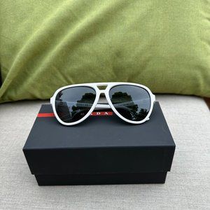 WHITE PRADA LINEA ROSSA RUBBERIZED AVIATOR SUNGLASSES IN MATTE WHITE