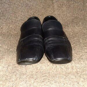 PRADA-Italy-Black Leather-Vibram Sole-Red Tab Loafers-Vintage-Sz 9-Excellent