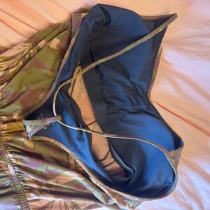 On the outside, an eye-catching print combines with a unique binding loop at the center of the back—creating a chic racerback silhouette that's built to withstand the test of trends.