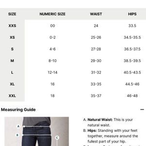 Size: Marked L (see size guide photo) but fits more like XL (waist 34")