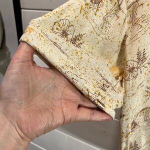 PRANA – Cropped Nature Shirt (Size S) Lightweight cropped shirt featuring a delicate print with florals, trees, and playful raccoons. Short sleeves, relaxed fit, button-down front – perfect for laid-back summer days or nature lovers. Chemise courte légère avec un imprimé délicat de fleurs, arbres et ratons laveurs. Manches courtes, coupe décontractée, boutonnée sur le devant – idéale pour les journées d’été ou les amoureuses de la nature. #prana #ratonlaveur #natureprint #bohostyle #chemisevintage #vestiaire&co #poshmark #@eloelo748