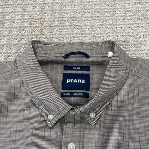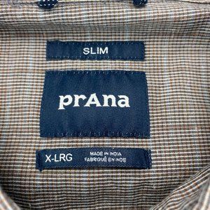 PRANA Shirt Men Extra Large XL Brown Button Down Slim Long Sleeve Casual Hemp
