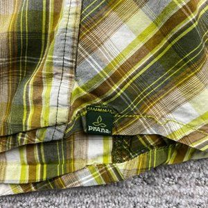 PRANA Shirt Men Extra Large XL Green Plaid Button Up Pearl Snap India Casual