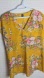 Charming mustard dress with floral design. Features a V-neck and cap sleeves. Ideal for casual outings.