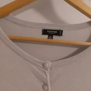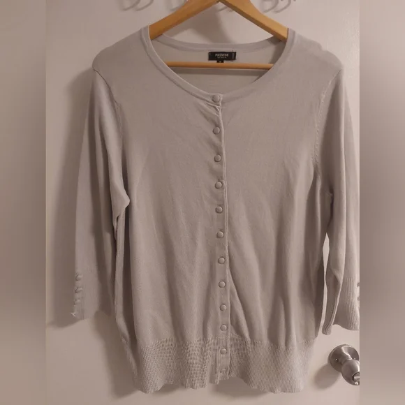 Stylish gray button-up cardigan with long sleeves. Perfect for layering.