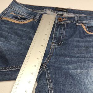 3021 INCREDIBLE DECORATIVE EMBROIDERY ON BACK FLAP POCKETS !! VINTAGE STONEWASHED DENIM 98% COTTON POLY !! CLASSIC 5-POCKET STYLE !! DOUBLE and TRIPLE STITCHING !! NOT ALTERED !! MIDRISE !! VINTAGE QUALITY DENIM and COOL DESIGNER style 😎