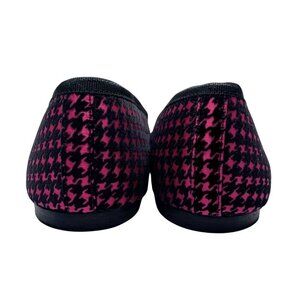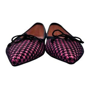 PRETTY BALLERINA ELLA BLACK FUCHSIA PINK HOUNDSTOOTH FRONT BOW FLAT SHOES - 9,5