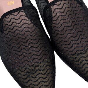 PRETTY BALLERINAS Mesh Glitters Slide Mule Pointed Toe Ballet Flat Black Nude 39