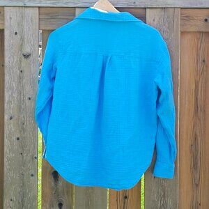 PRETTY BLUE Women's GAP Crinkle Button Down Blouse Size XS THE BIG SHIRT