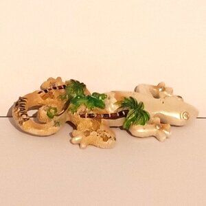 PRETTY Jamaica Fridge Magnet Gecko with Scarlet snakes Sparkle Eyes
