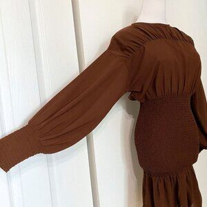 PRETTY LAVISH LUCILLE MINI SHIRRED DRESS IN BROWN - 6