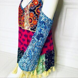 PRETTY LITTLE THING BOHEMIAN MULTICOLOUR PATCHWORK TOP WOMEN SIZE 0
