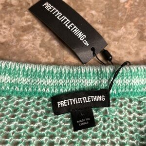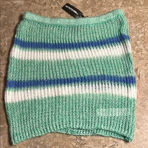 PRETTY LITTLE THING Striped Knit Skirt - Green and Blue NWT sheer ,open knit