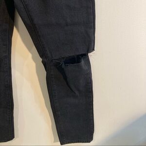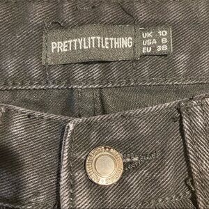 PRETTY LITTLE THING Sz 6 Washed Black Slashed Knee Long Straight Leg Jeans