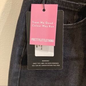 PRETTY LITTLE THING Sz 6 Washed Black Slashed Knee Long Straight Leg Jeans NWT.