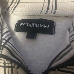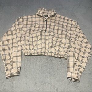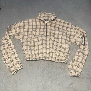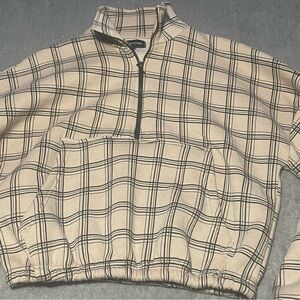 Pretty Little Thing tan plaid half zip with pockets oversized size large VGUC