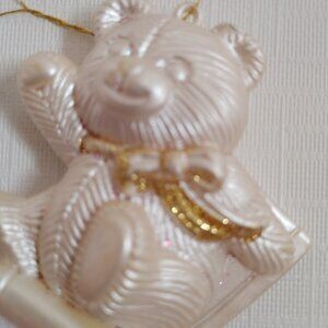 PRETTY Teddy Bear Sledding Christmas Ornament opalescent pearl Look