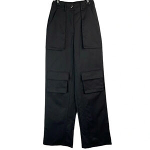 PRETTYLITTLETHING NWT Black Twill Pocket Detail High Waist Cargo Pants Size 0