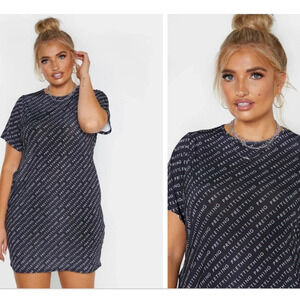This dress is a must-buy this season. Featuring a black material with a 'PrettyLittleThing' slogan print and an oversized fit, we are obsessed. Team this with heeled boots for a statement off-duty look that we are loving.