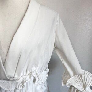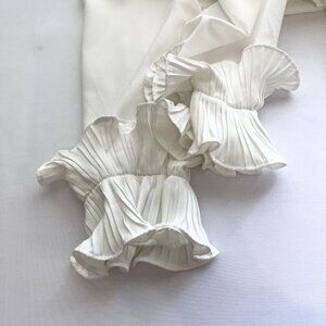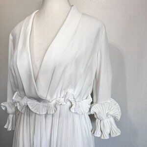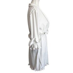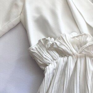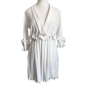 PRETTYLITTLETHING WHITE FRILL DETAIL PLEATED SKATER DRESS -