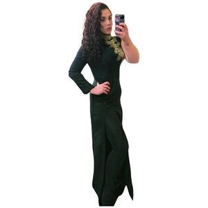 *** This dress has been custom altered to fit a size 9-10. Also shortened to fit (in heels) a person standing at 5 foot 3-4 inches tall.