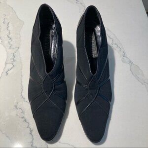 PREVATA Sz 9B Fabric and Leather 2” Heel Y2K Style Made in Italy. Lovely and slick. Elegant. Subtle sophistication.