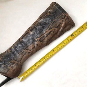 PRIALPAS GOMMA Italy Beautiful Sexy Brown Grey Snakeskin Style Elastic Stretchy Boots. Black High Heeled 3.25 inch. Never worn purchased straight from Italy years ago when travel. Statement Boots.