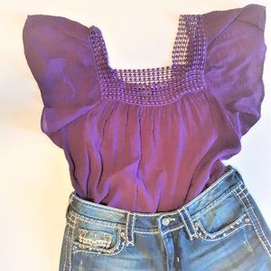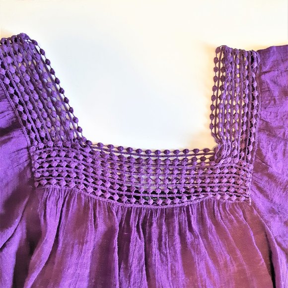 PRICE DROP SPENSE * BOHO Lace Purple Blouse Bell Sleeve Size MEDIUM -