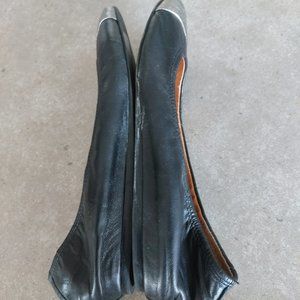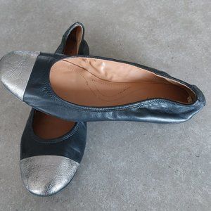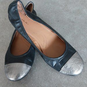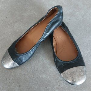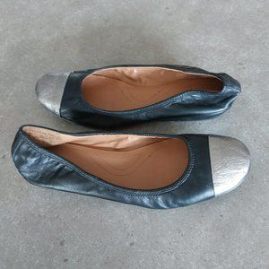 Leather Upper w/Silver Cap Toe Ballet Flats