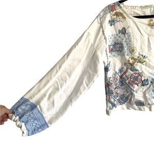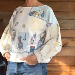 Handmade, hand made hand crafted, blouse, top, shirt, pullover, recycled, repurposed, boho, Cottagecore, country, prairie, unique, original, Vintage, oversized, print, Anthropologie