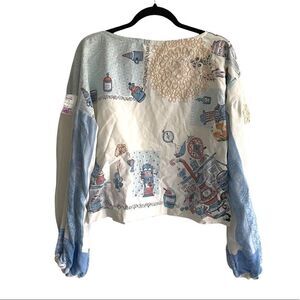 PRIM STARGAZER Recycled Blouse Top Shirt With Patches Print One Of A Kind Hand Made
