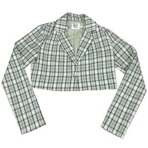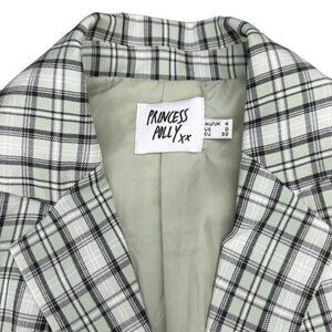 PRINCESS POLLY One Button Cropped Blazer Sz 0 Green Plaid
