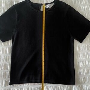PRINCIPLES Vintage Black Short Sleeve Sweater Delicate Bead Detail Neckline